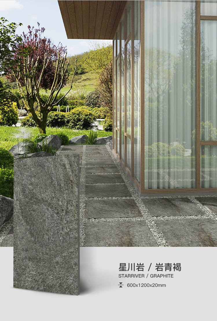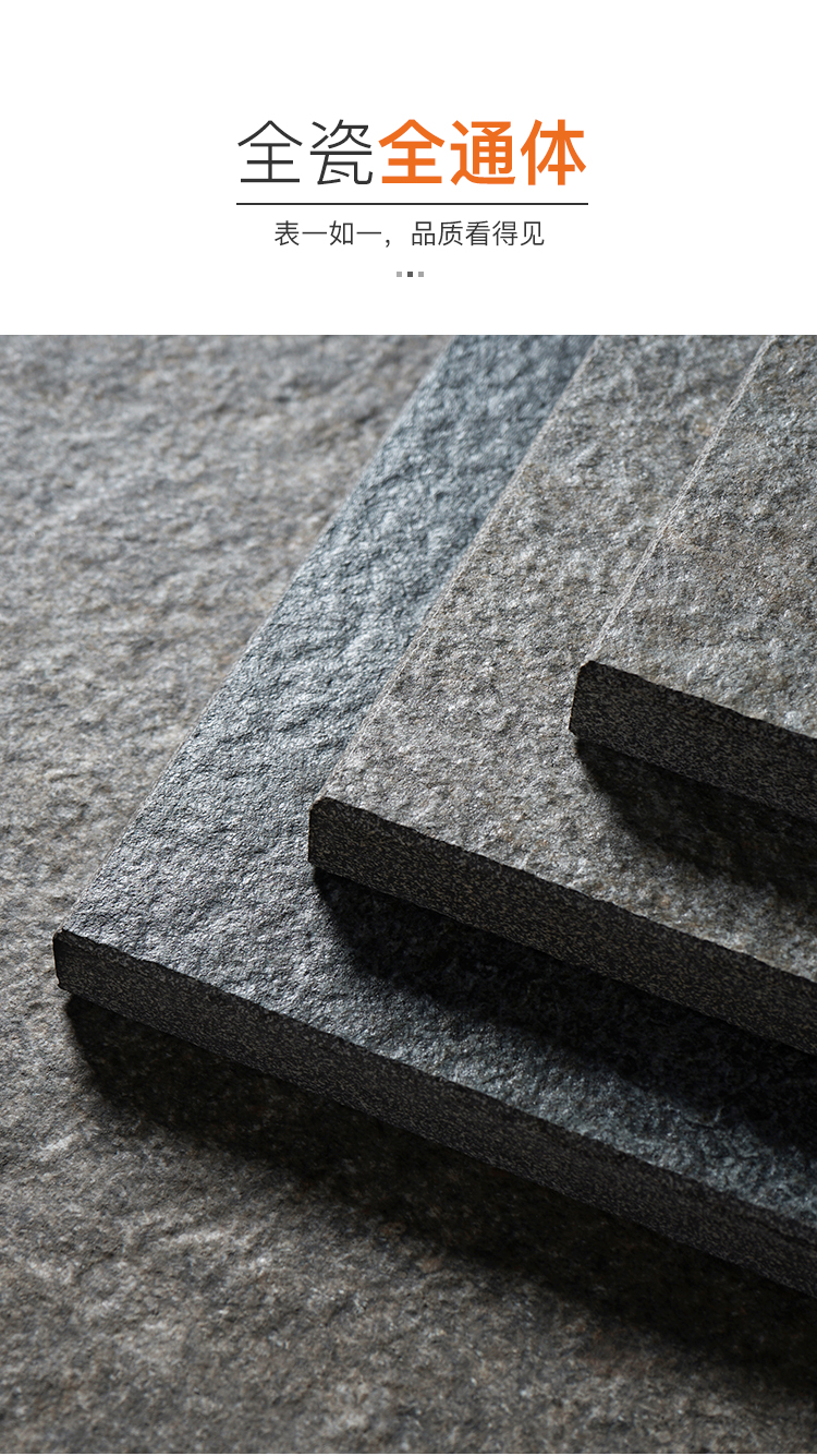 巖石面,模壓還原板巖紋理,啞光封釉強(qiáng)化其防潮防污屬性
