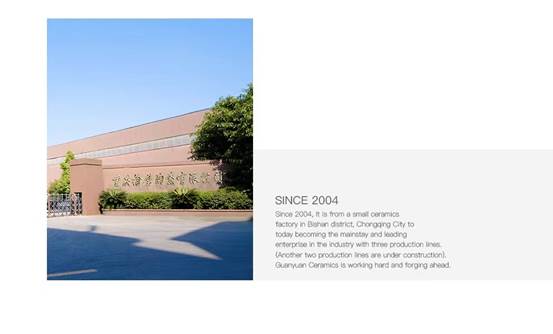 自2004年建廠以來,從重慶市璧山區(qū)一個(gè)小小的陶瓷工廠,行至今日成為行業(yè)內(nèi)擁有三條生產(chǎn)線(即將建成五條)的中流砥柱、頭部企業(yè),冠源陶瓷朝耕暮耘、砥礪前行,只為將最優(yōu)質(zhì)的“冠源磚”&最和諧美好的人居生活帶到你與家人的面前。